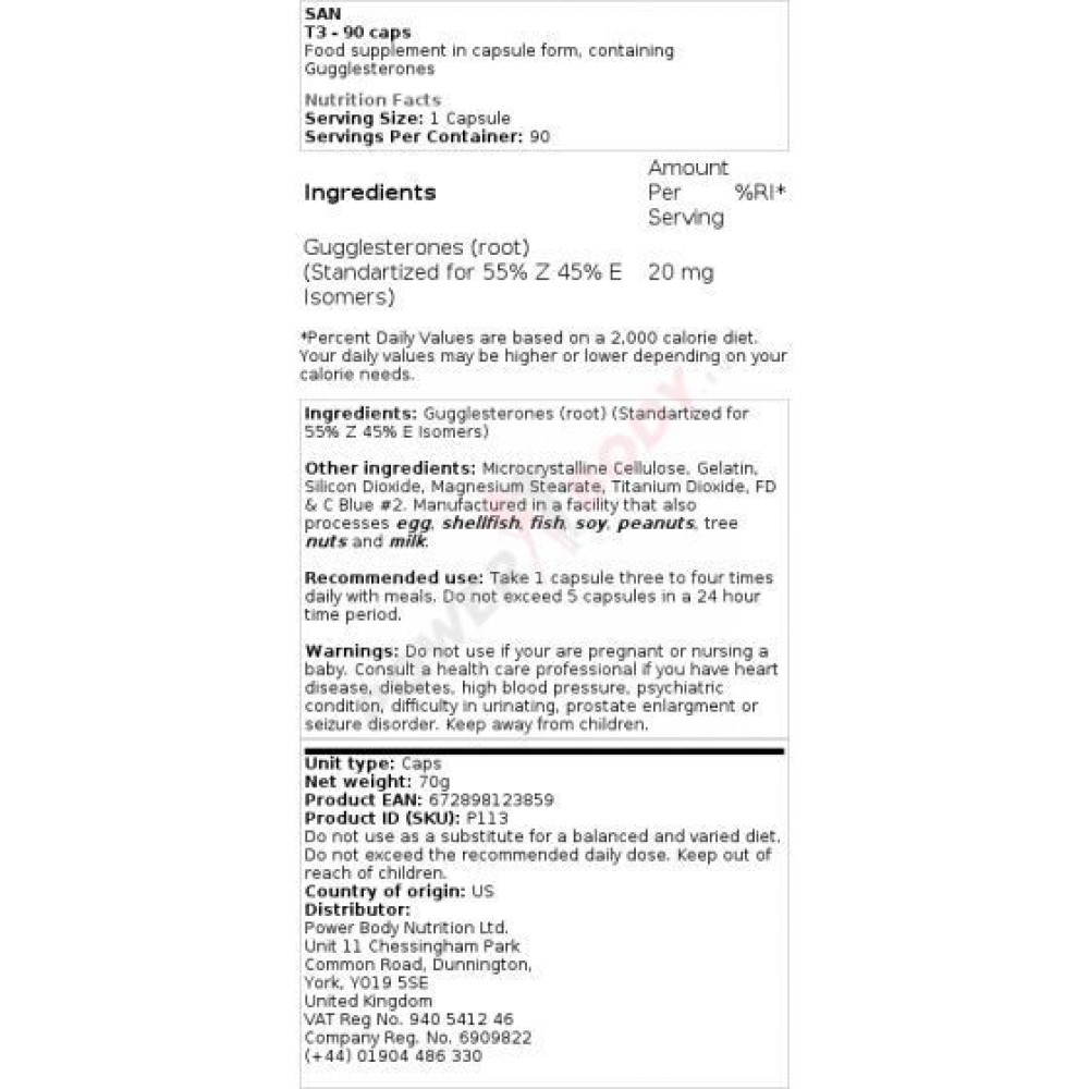 | Dosis (médica) | 25 mg de guggulsteronas tres veces al día |